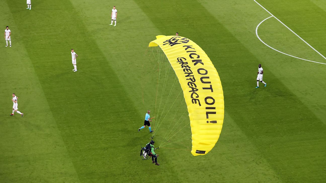 A greenpeace stunt didn't go exactly as planned at euro 2020 greenpeace. The paraglider narrowly missed the crowd as he.